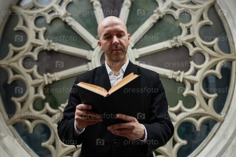 Пастор читает Библию в церкви