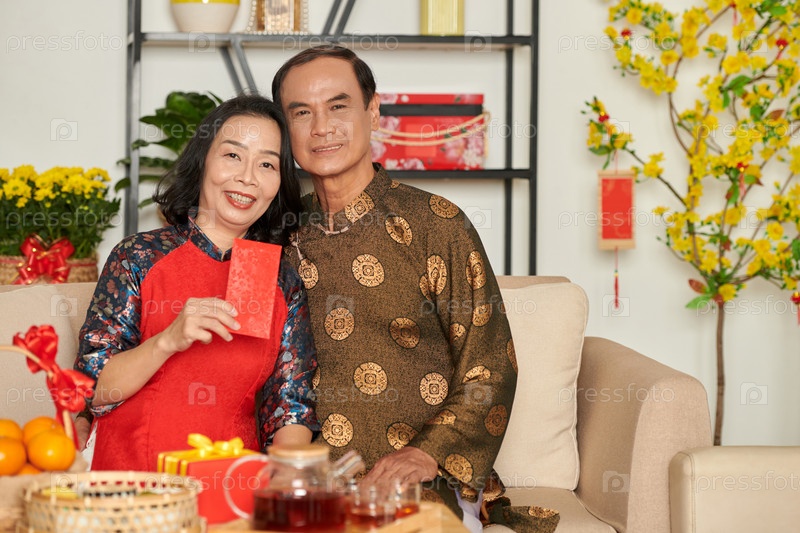 Старшая пара с красными конвертами