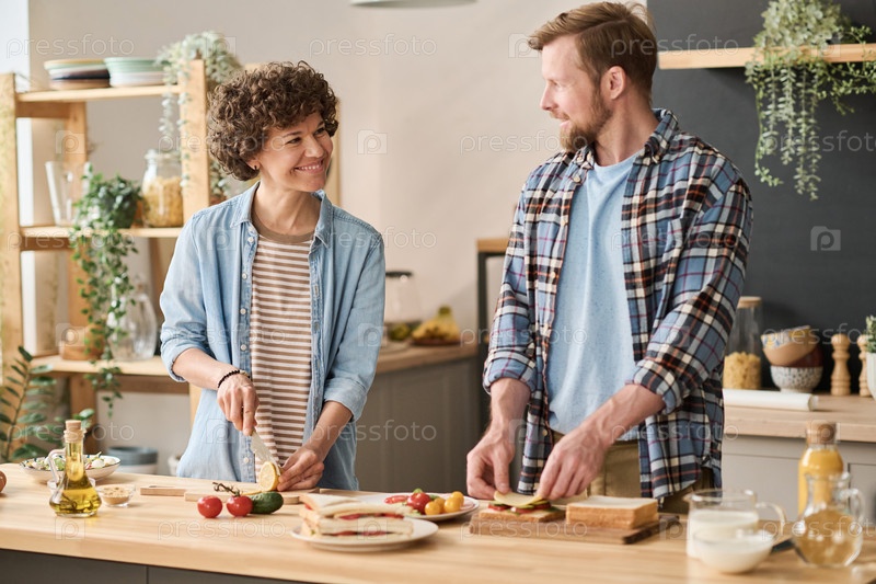 Молодая пара готовит вместе на кухне