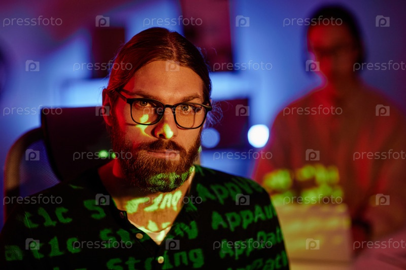 Лицо молодого серьезного программиста разнообразия в очках