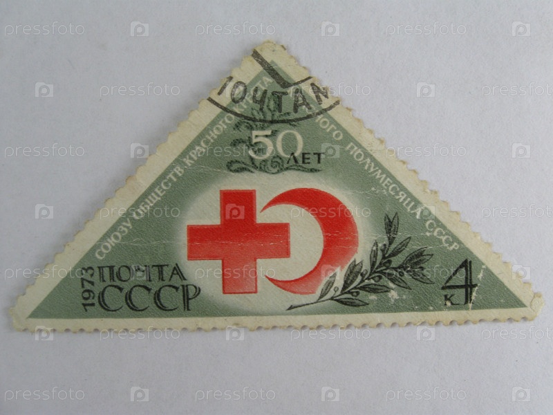Треугольная почтовая марка на белом фоне