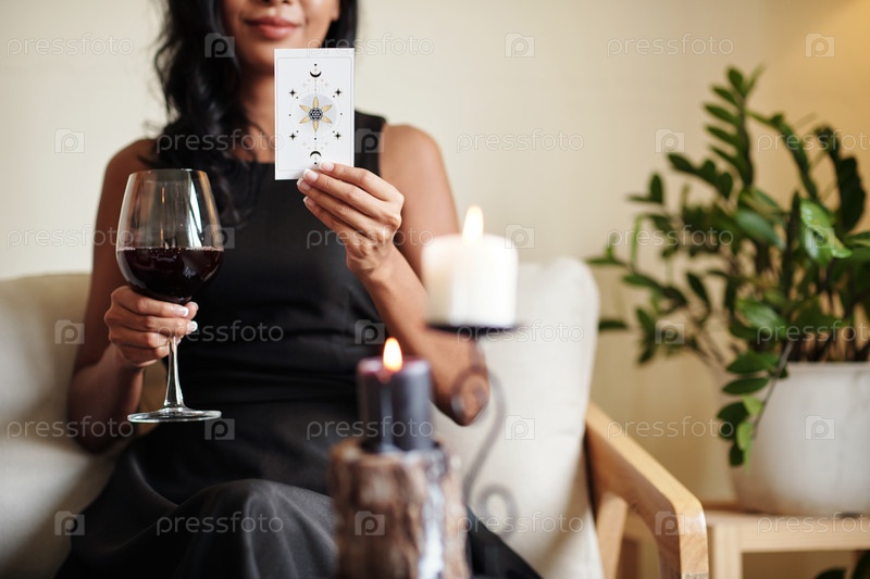 Улыбающаяся женщина с карточкой Таро
