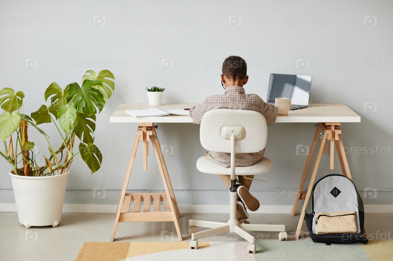 Учится дома Back View Boy