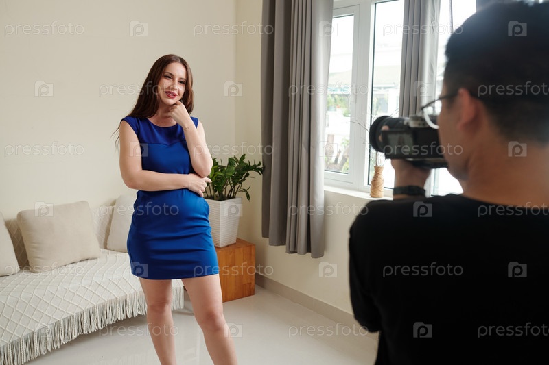 Женщина позирует перед фотографом