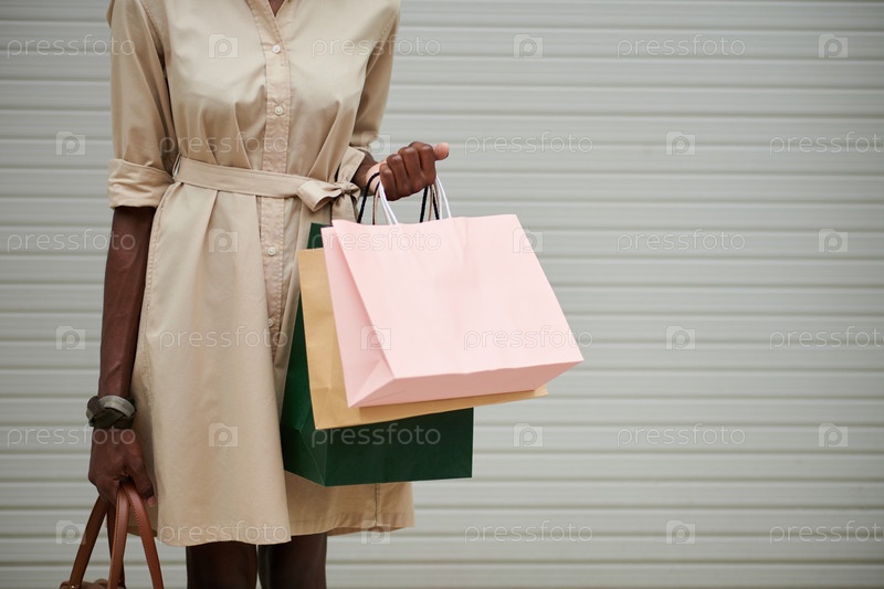 Черная женщина держит торговые сумки