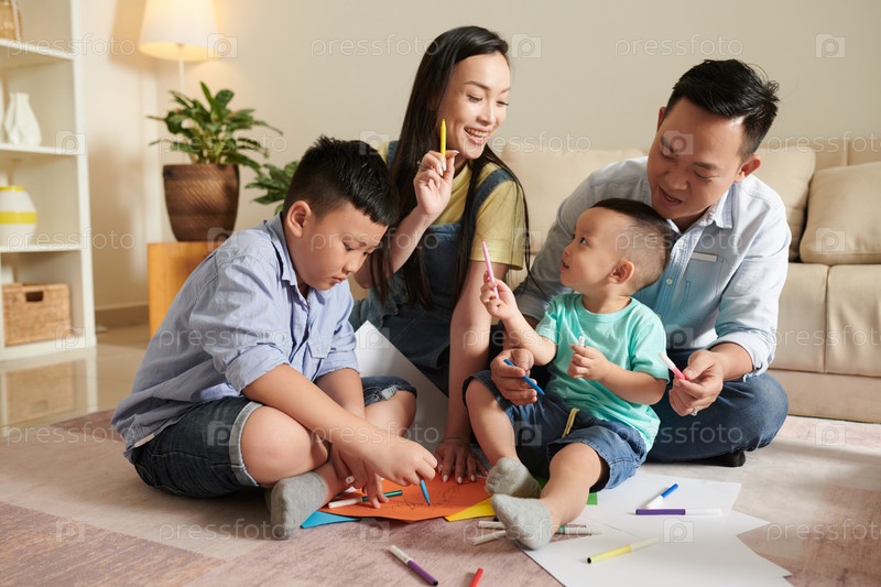 Семья с радостным рисунком