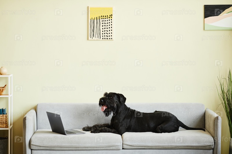 Собака лежит на диване в гостиной