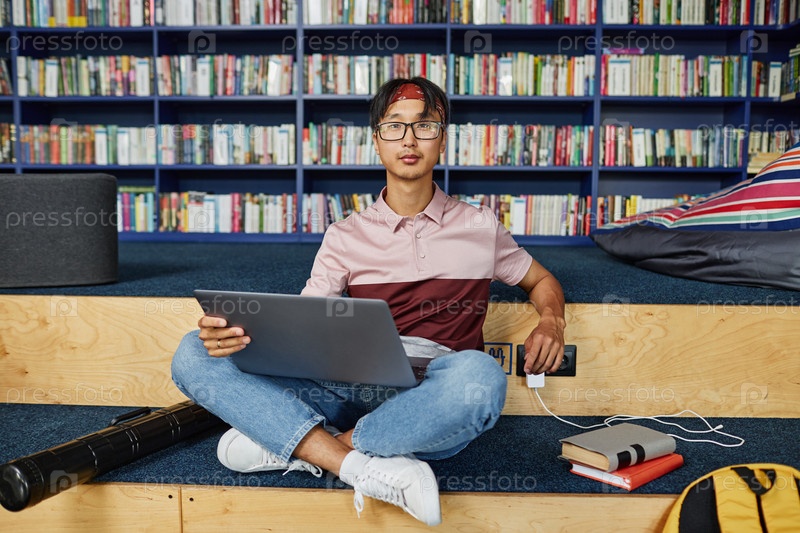 Молодой азиат в библиотеке