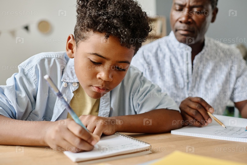 Мальчик делает домашнее задание с учителем