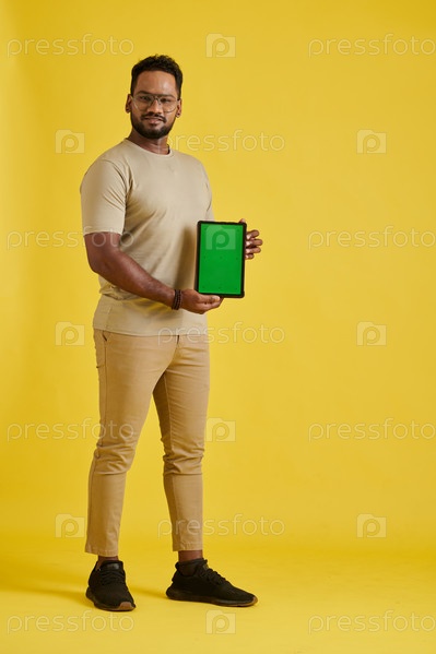 Позитивный мужчина с планшетным компьютером