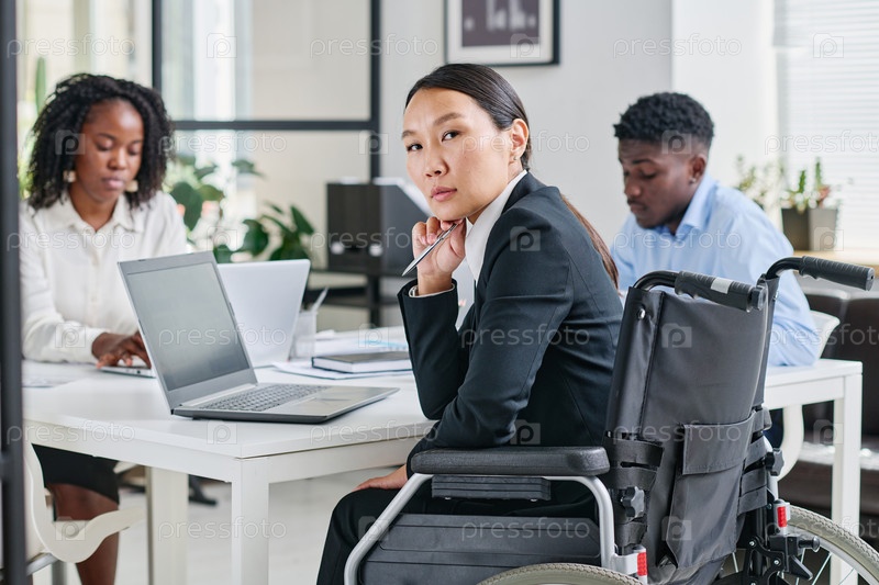 Женщина с инвалидностью, сидящая на собрании