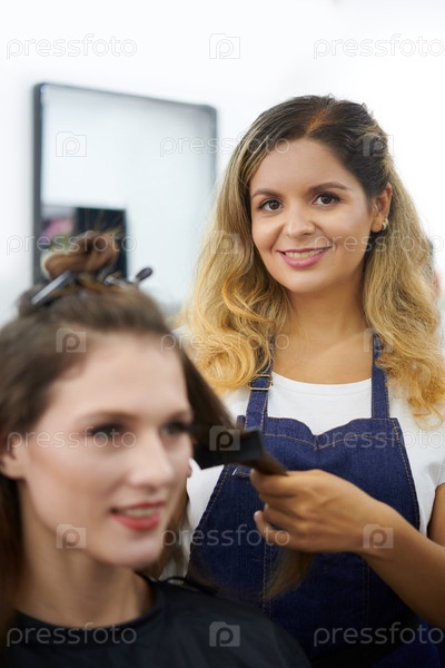 Парикмахер стилизует волосы женщины