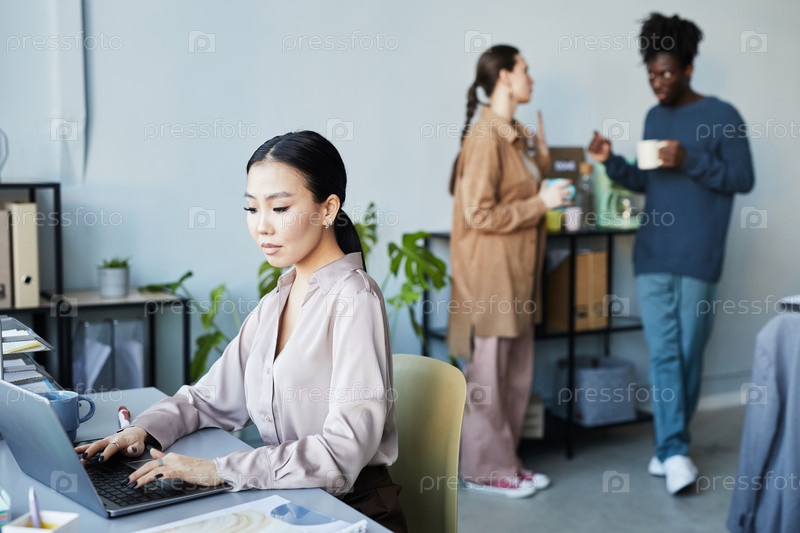 Молодая азиатская женщина работает в офисе