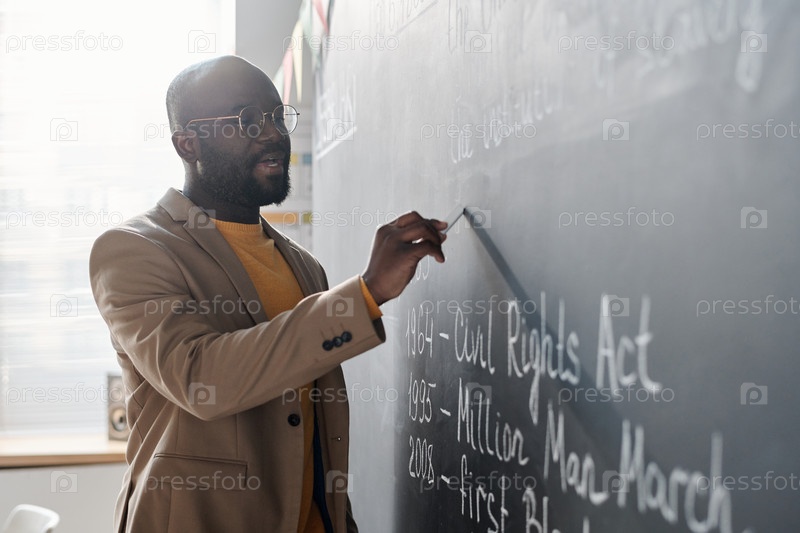 Учитель пишет информацию на доске