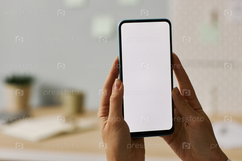 Минимальные близкие женские руки, держащие смартфон с мокром белого экрана