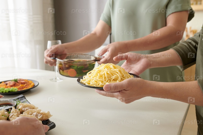 Женщины, подающие домашнюю еду