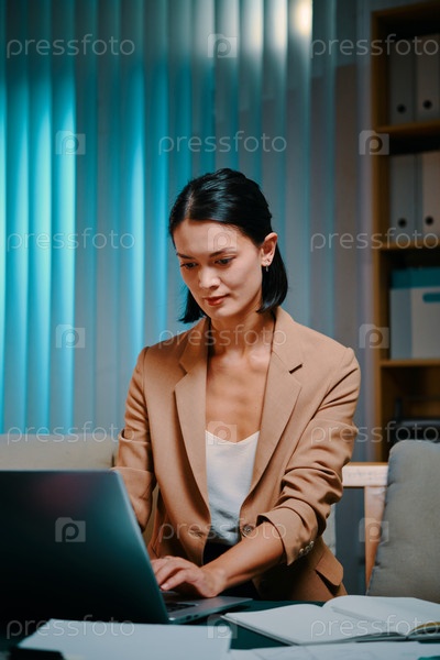 Деловая женщина, работающая поздно ночью