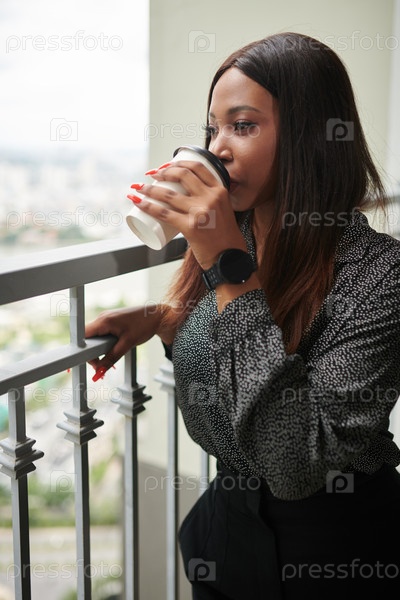 Молодая бизнесвуменка пьет кофе