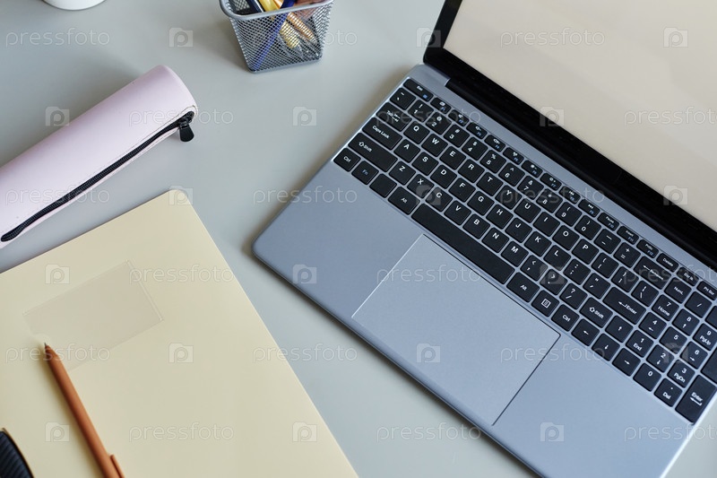 Flatlay ноутбука и блокнота на студенческом столе
