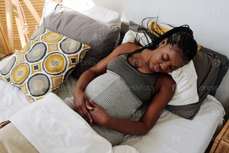 Беременная женщина спит в постели