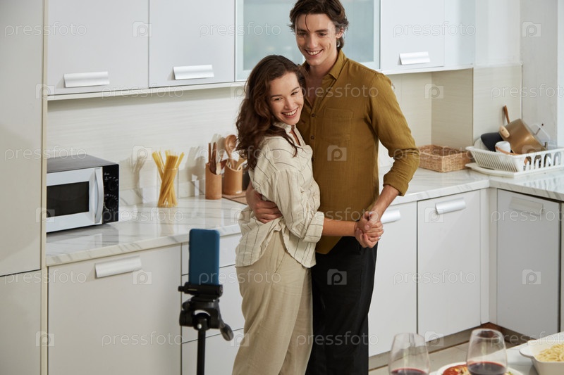 Пара блогеров снимает себя, танцуя на кухне для семейного влога