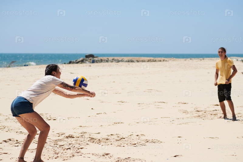 Люди, играющие в пляжный волейбол