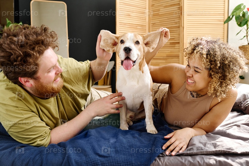 Молодая пара развлекается с собакой