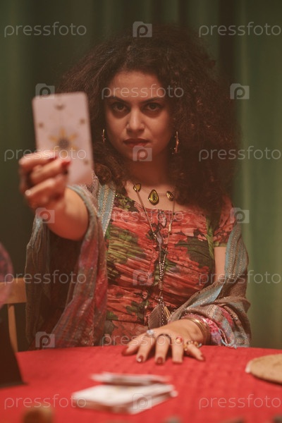 Теллер удачи показывает карточку Таро