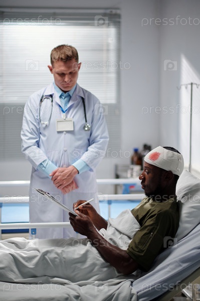 Солдат подписывает документ в больнице