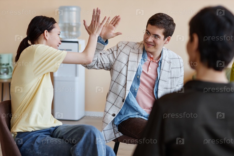 Молодые люди приветствуют друг друга на сессии