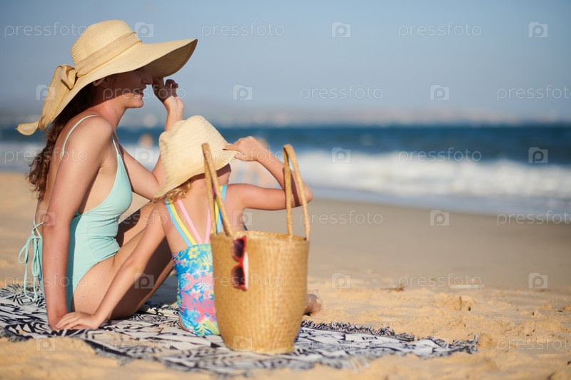 Мать и дочь на песчаном пляже