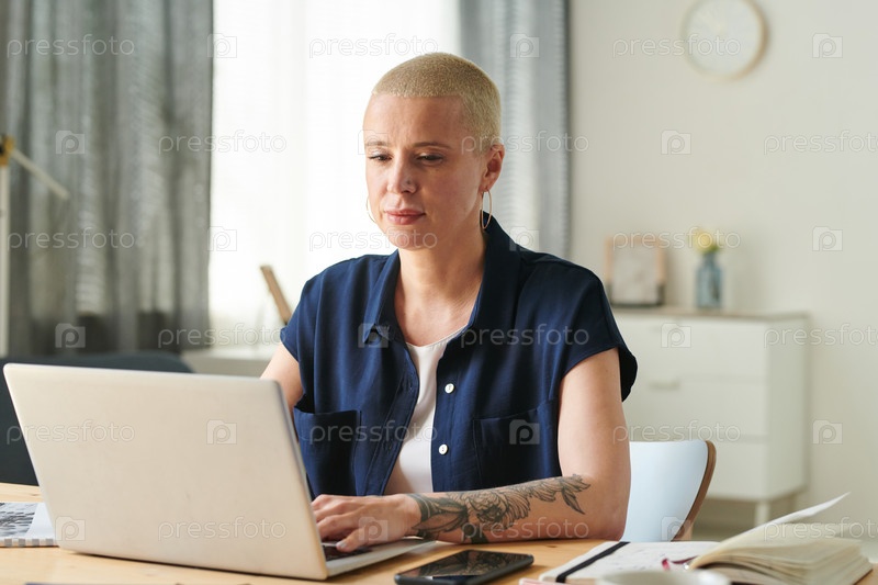 Женщина, работающая на ноутбуке дома