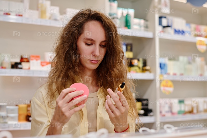 Женщина, выбирающая косметические средства для своей кожи