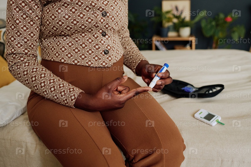 Беременная девушка контролирует уровень сахара в крови