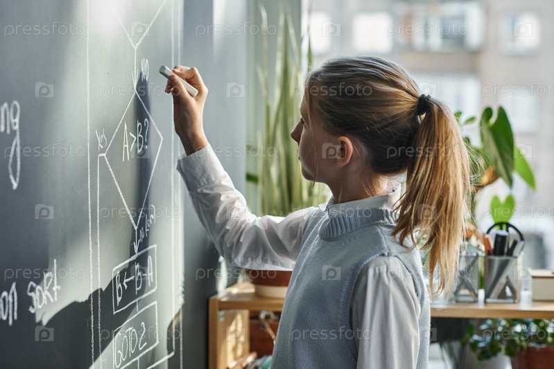 Школьница пишет формулу на доске