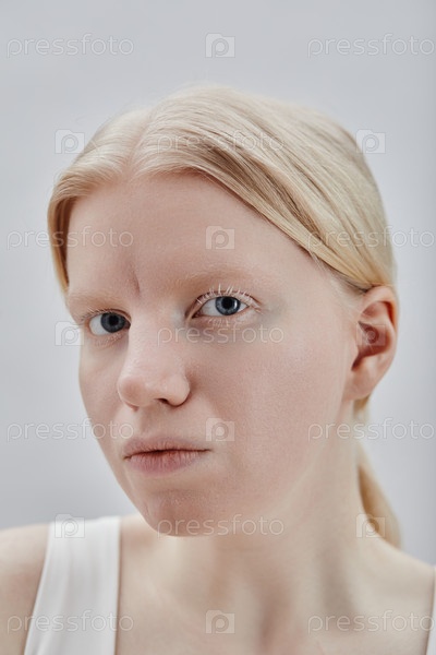 Эфирная молодая женщина с альбинизмом смотрит на камеру