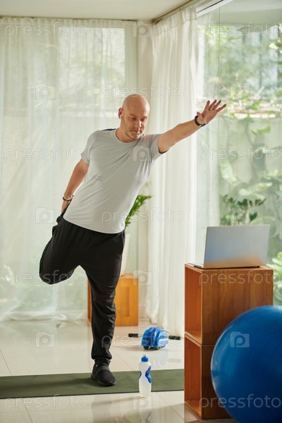 Мужчина, имеющий онлайн-класс фитнеса