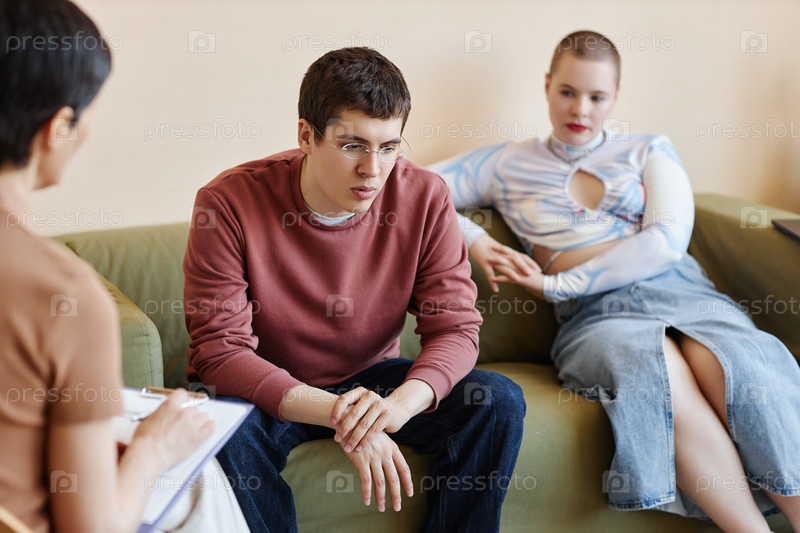 Молодая пара говорит о своих проблемах со специалистом