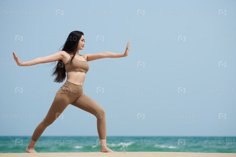 Практикующая йогу на пляже женщина