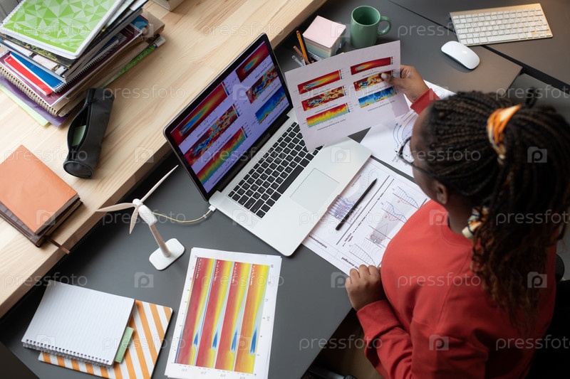 Деловая женщина, работающая с графиками и диаграммами в офисе