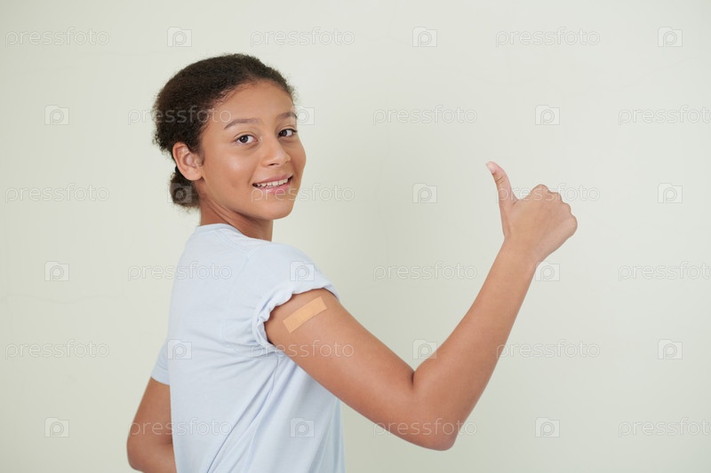Подростковая девочка счастлива с вакциной