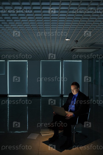 Бизнесмен средних лет, работающий на ноутбуке