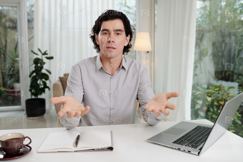 Уверенный в себе бизнесмен или учитель, объясняющий что-то онлайн аудитории