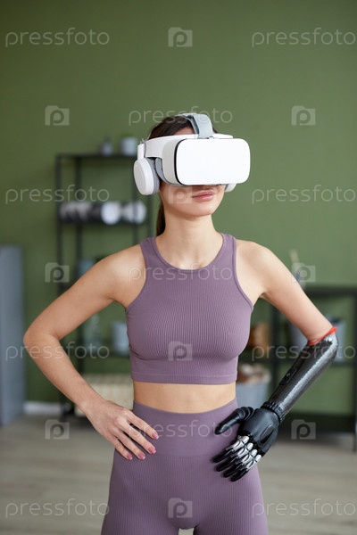 Девушка, выполняющая упражнения в очках VR