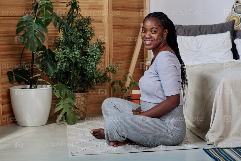 Беременная женщина медитирует дома