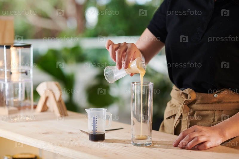 Бариста делает холодный кофе напиток