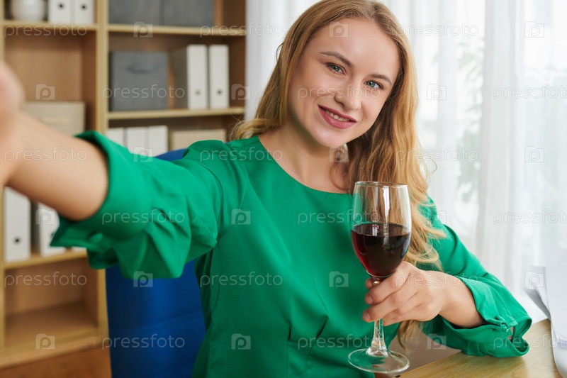 Женщина-предпринимательница делает селфи
