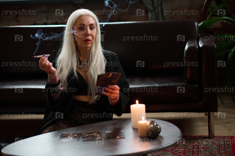Таинственная зрелая женщина с карточками таро