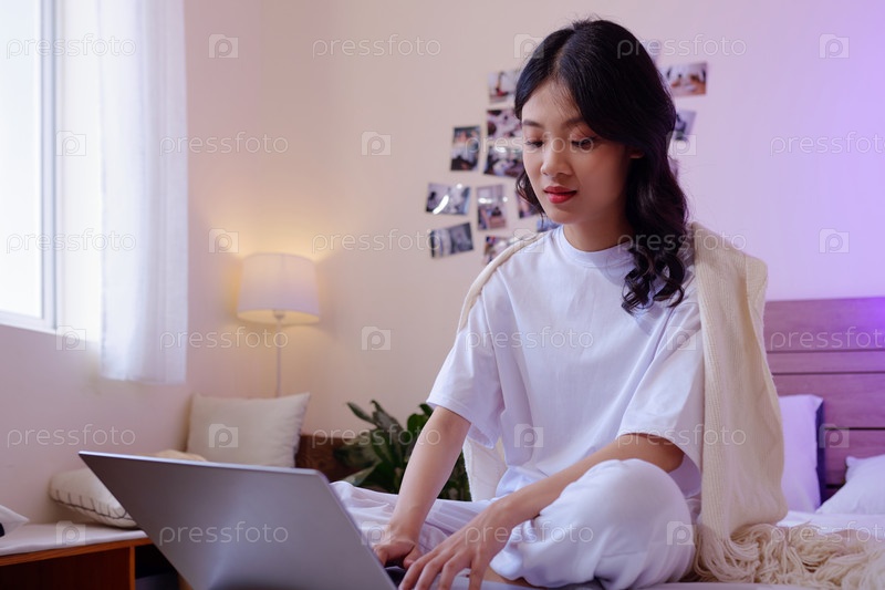 Девушка-подросток работает на ноутбуке