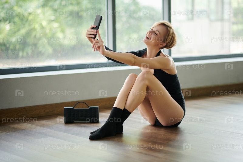 Радостная танцовщица, делающая селфи